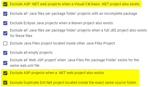 The discoverer contains various Project Exclusion Rules which are enabled by default. Following the first delivery of an application where the discoverer was installed, the rules will be available in Console UI for subsequent version deliveries: