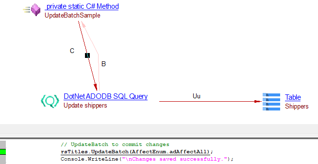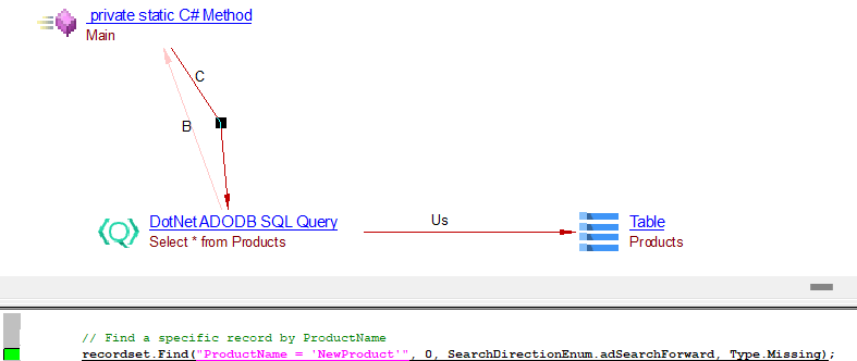 | useLink | DotNet ADODB SQL Query | Table, View | Created by SQL Analyzer when DDL source files are analyzed |