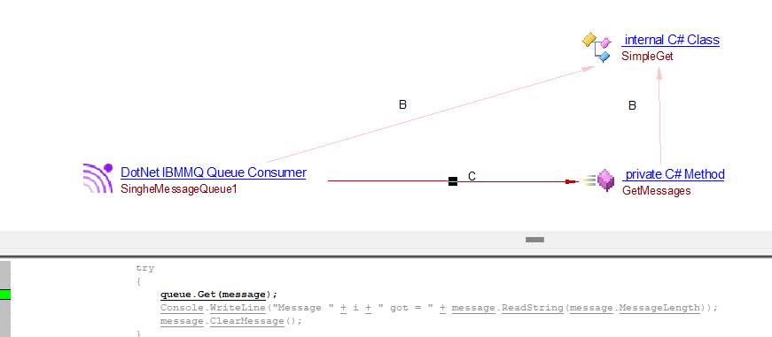 | callLink | callLink between the DotNet IBMMQ Queue Consumer or DotNet IBMMQ Topic Subscriber objects and the caller C# method | Consumer API’s support by IBMMQ : IBM.WMQ.MQQueue.Get IBM.WMQ.MQDestination.Get IBM.WMQ.MQQueue.PutReplyMessage IBM.XMS.IMessageProducer.Send |