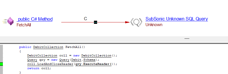 | SubSonic SQL Query | An object is created for each direct SQL query operation found in Subsonic project and resolved in a method call | |