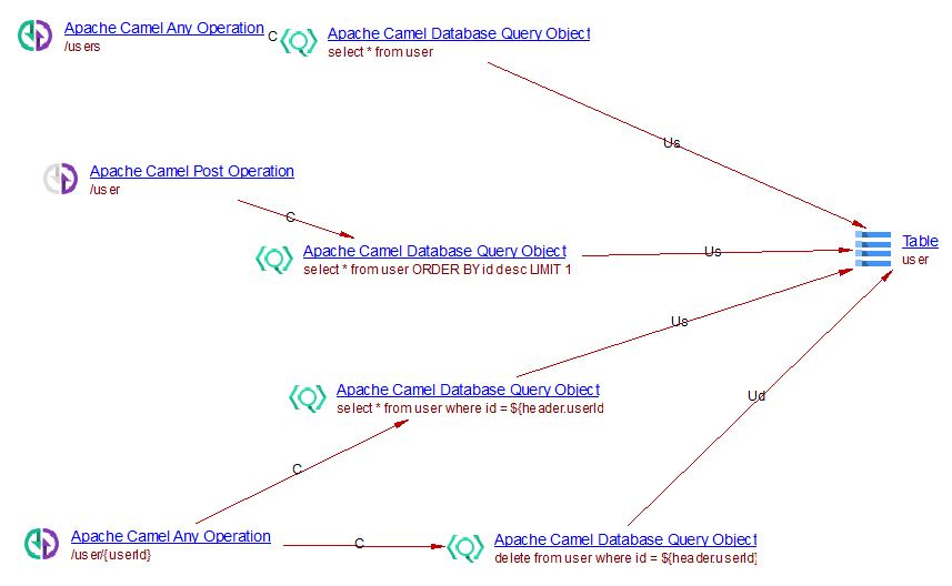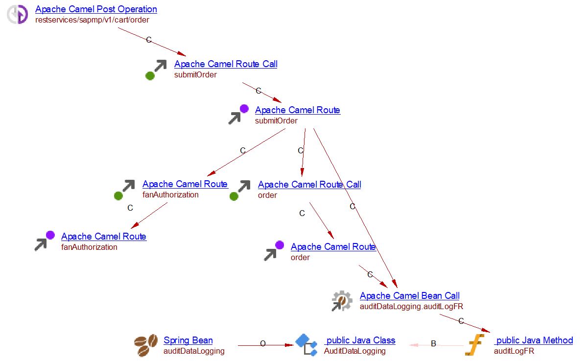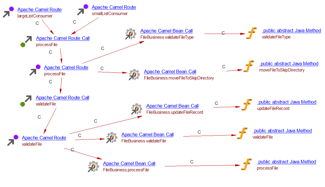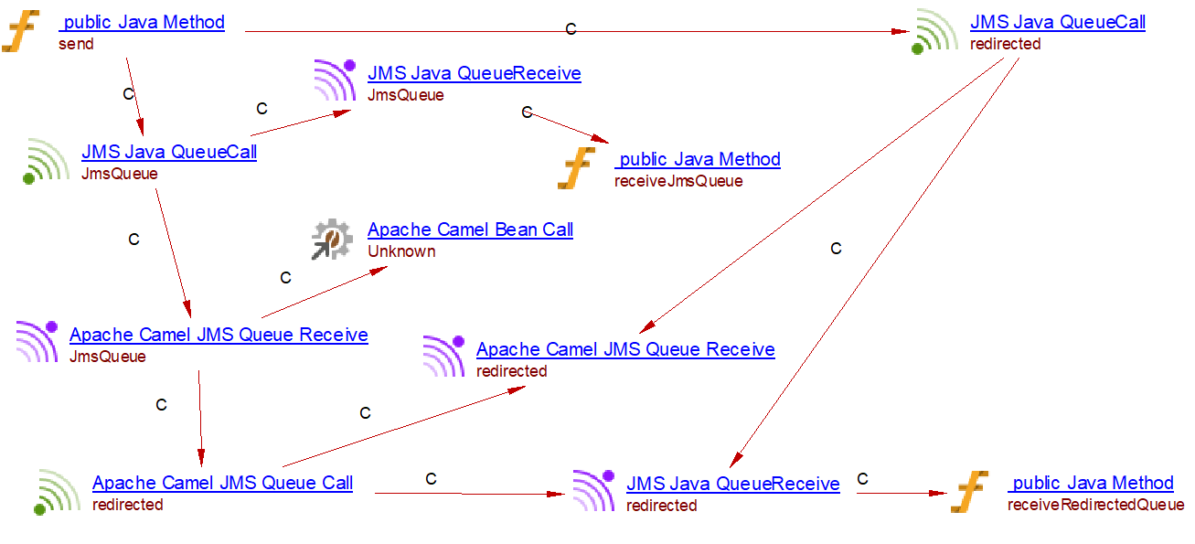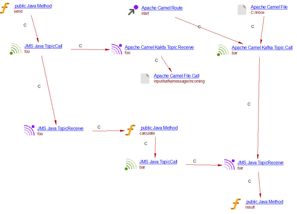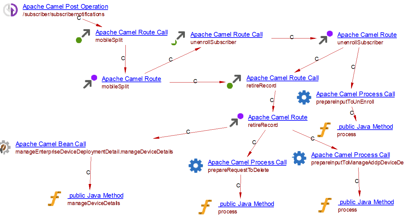 Apache Camel callee objectsApache Camel JMS QueueCallApache Camel Route Call Apache Camel Bean Call Apache Camel Process Call Apache Camel Database Query Apache Camel IBM Queue Call Apache Camel ActiveMQ Queue Call Apache Camel RabbitMQ Topic Call Apache Camel File Call Apache Camel Kafka Topic Call Apache Camel AWS S3 Bucket Apache Camel AWS Unknown S3 Bucket Apache Camel Unknown JMS Queue Call Apache Camel Unknown IBM Queue Call Apache Camel Unknown Kafka Topic Call Apache Camel Unknown ActiveMQ Queue Call Apache Camel Unknown RabbitMQ Topic Call |