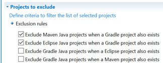 | ExclusionRuleJavaPreferGradleToEclipse | Prefer Gradle Project over Eclipse Project for the same project | True |