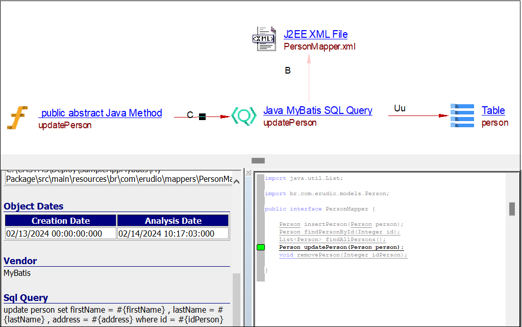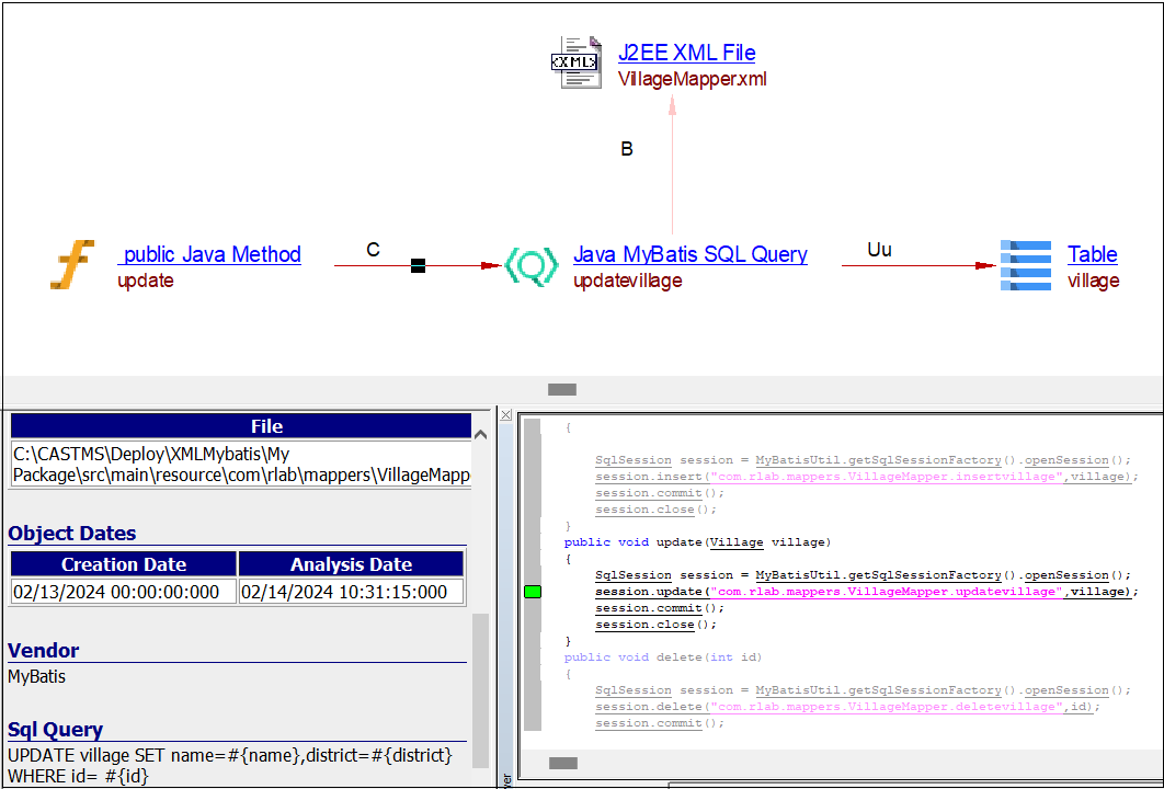 | Java MyBatis SQL Query | An object is created for each native SQL query found in java project and resolved in a method call/xml file | |