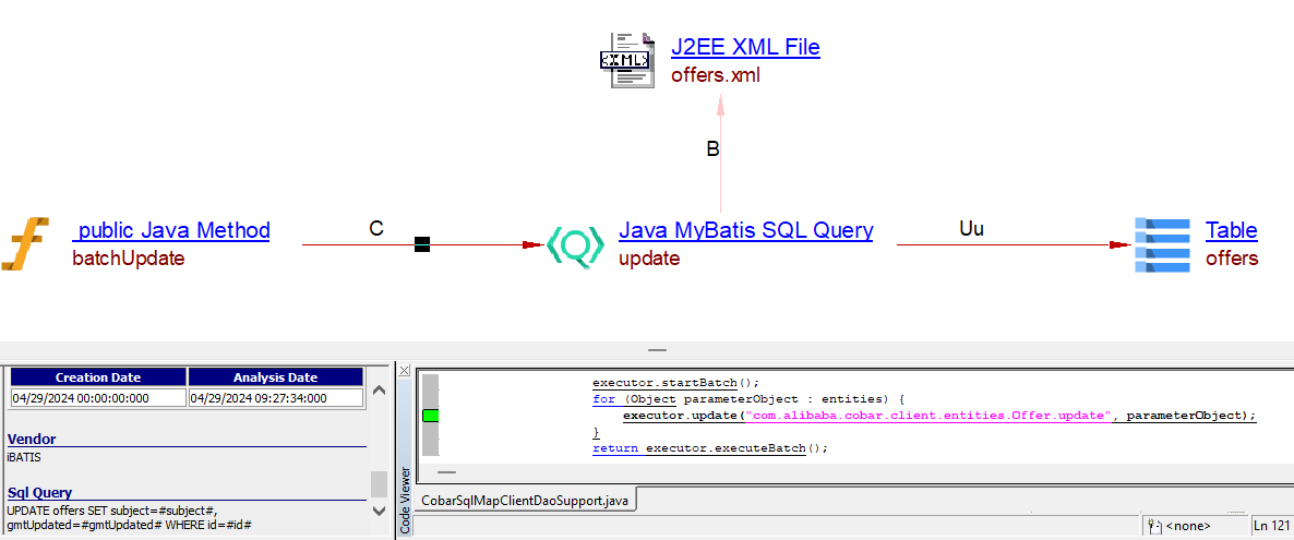 | DotNet MyBatis SQL Query | An object is created for each native SQL query found in .Net project and resolved in a method call/xml file | |