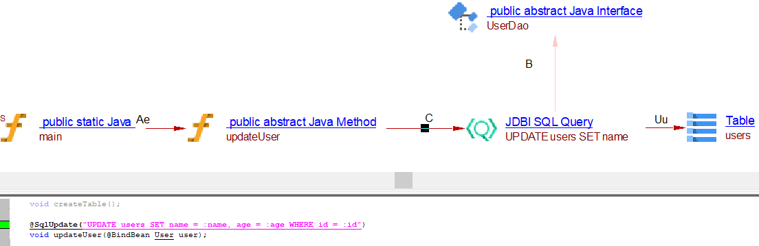 | Link Type | Caller type | Callee type | Supported Jdbi Methods and Annotations |