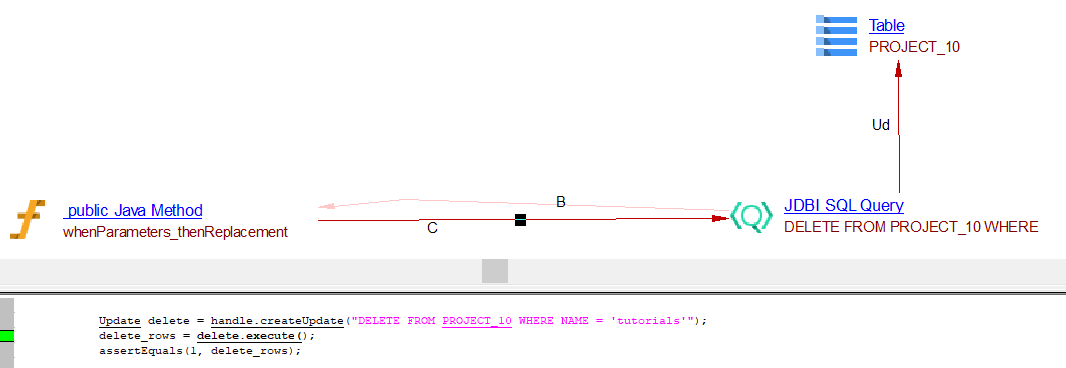 Update delete = handle.createUpdate("DELETE FROM PROJECT_10 WHERE NAME = 'tutorials'");