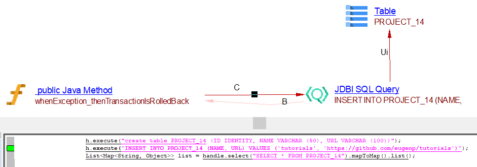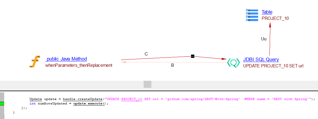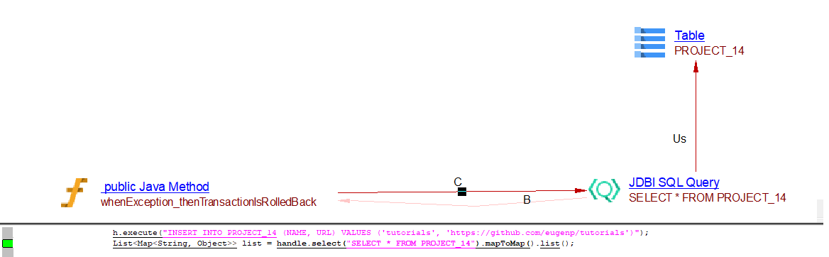 | useLink | JDBI SQL Query | Table, View | Created by SQL Analyzer when DDL source files are analyzed |