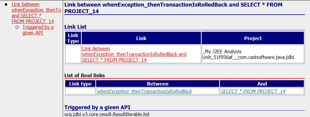 | useLink | JDBI SQL Query | Missing Table | Created by Missing tables and procedures for JEE extension when the object is not analyzed. |