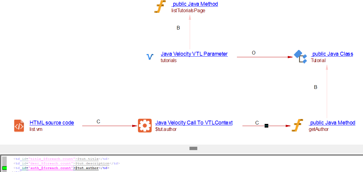 | relyonLink | Between Java Velocity VTL Parameter and respective Context JAVA class. | org.apache.velocity.tools.view.VelocityViewServlet.getTemplate org.apache.velocity.app.Velocity.getTemplate org.apache.velocity.app.VelocityEngine.getTemplate org.apache.velocity.tools.view.VelocityView.getTemplate org.apache.velocity.context.Context.put org.apache.velocity.VelocityContext.put org.apache.velocity.context.AbstractContext.put NOTE: Java Velocity VTL Parameter object is created, only if the above APIs are called from overridden handleRequest method of VelocityViewServlet/VelocityLayoutServlet derived class. |