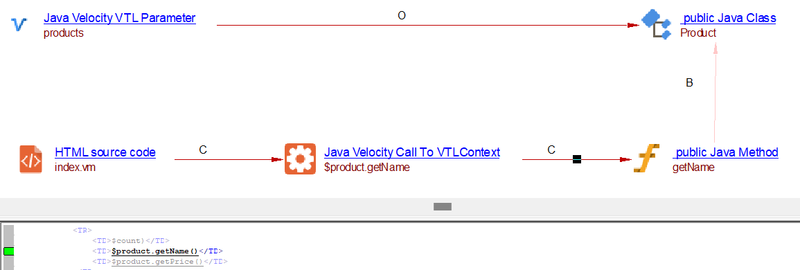 | relyonLink | Between Java Velocity VTL Parameter and respective Context JAVA class. | org.apache.velocity.tools.view.VelocityViewServlet.getTemplate org.apache.velocity.app.Velocity.getTemplate org.apache.velocity.app.VelocityEngine.getTemplate org.apache.velocity.tools.view.VelocityView.getTemplate org.apache.velocity.context.Context.put org.apache.velocity.VelocityContext.put org.apache.velocity.context.AbstractContext.put org.apache.velocity.tools.ToolContext.put org.apache.velocity.tools.ToolContext.putAll NOTE: Java Velocity VTL Parameter object is created, only if the above APIs are called from overridden handleRequest method of VelocityViewServlet/VelocityLayoutServlet derived class. |