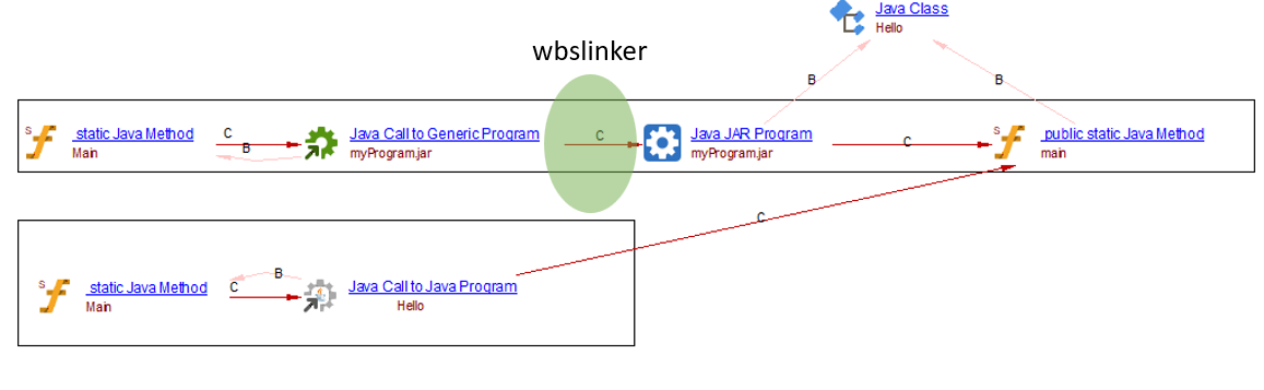 This extension is responsible of creating objects representing calls from a java application to external programs. It is also responsible of creating objects representing JAR applications. Here programs is understood in a broad sense: it comprises scripts, operating system commands, and general purpose applications. The link between these objects and the objects representing the programs themselves (if present) is performed by a different com.castsoftware.wbslinker extension during the application analysis level.