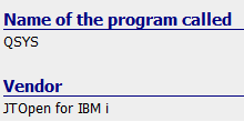 In the example below the call to the the cobol program QSYS is represented by a Java Call to Midrange Program object of the same name.