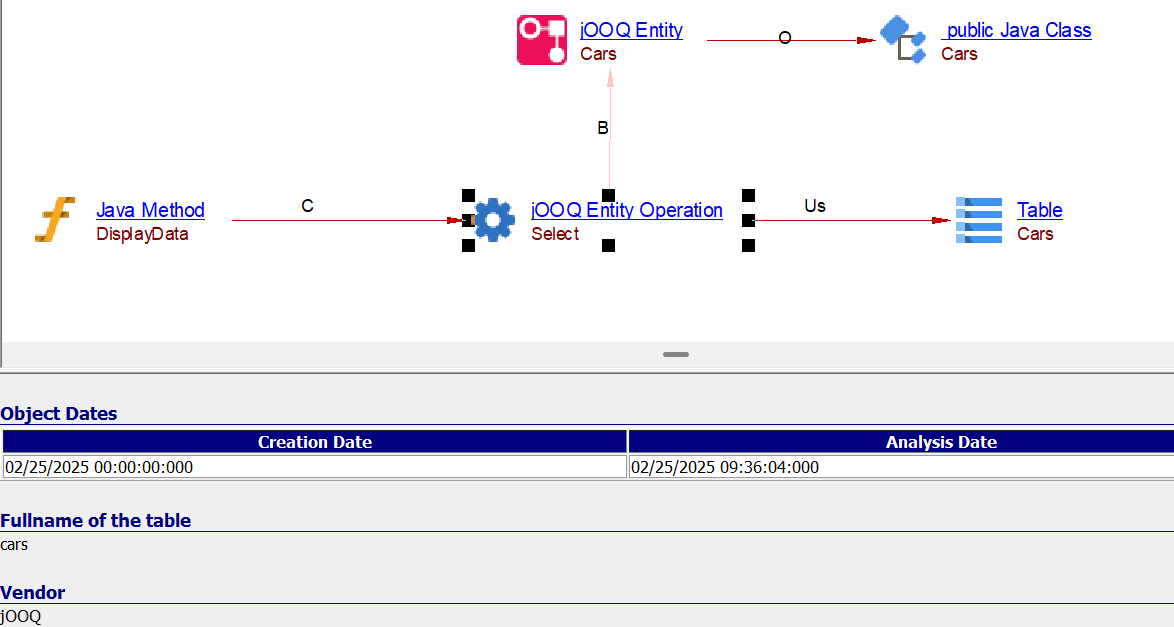 If your Java application contains CRUD operations with fluent API or “raw” SQL queries in its source code provided by jOOQ packages and you want to view these object types and their links, then you should install this extension.
