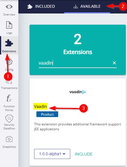 This extension provides support for Vaadin Framework - Vaadin is a web app development framework for Java that includes a large library of UI components.