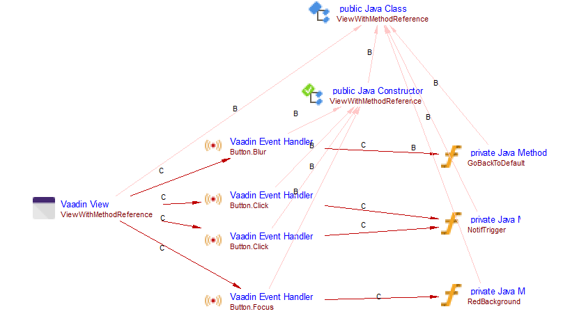 The main purpose of this extension is to provide support for views and events provided in the Vaadin Framework and link them to the relevant java objects (resolved by the JEE Analyzer).