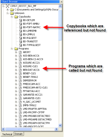 There are technical/system/utility programs which are called by application programs and JCL jobs. The Mainframe Analyzer can also produce “Unresolved objects” messages about them. Their name usually begins with the “DFH”, “DSN”, “IKJ”, “DFS” or “IEB” prefixes. The “DFH” programs are dedicated to CICS, the “DSN” and “IKJ” programs are usually dedicated to DB2 and the “DFS” programs are dedicated to IMS. The JCL job can also invoke utilities such as the IEB family, IEF family or IDCAMS, FILE-AID… Do not ask the application team to deliver them because they do not have the corresponding source files. If they are used to run another program in a JCL job then you should change the analysis parameters. Otherwise, you can ignore the messages.