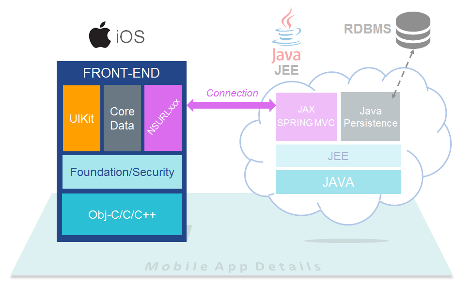 | iOS Front-End connected JEE Back-End | iOS Front-End connected Node.js Back-End |