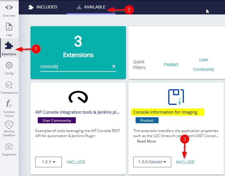 This extension transfers specific application properties such as the LOC (lines of code) from a file called console_information.json (generated by CAST Console and stored in the %PROGRAMDATA%/CAST/CAST/CASTMS/LISA folder on each Node managed by CAST Console) into the application’s “analysis” (or “local”) schema during the analysis process. Subsequently, the information in the “analysis” schema is used by CAST Imaging following an ETL import, as described below.