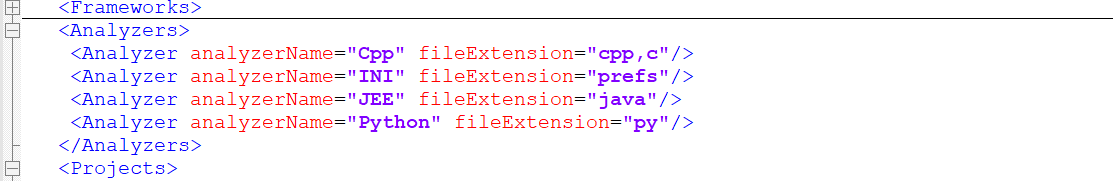 | Technology | analyzer.config | Identifies technology types based on file extensions. For example: This will give the following results, which can be used, for example, to identify which CAST AIP extensions may need to be installed: