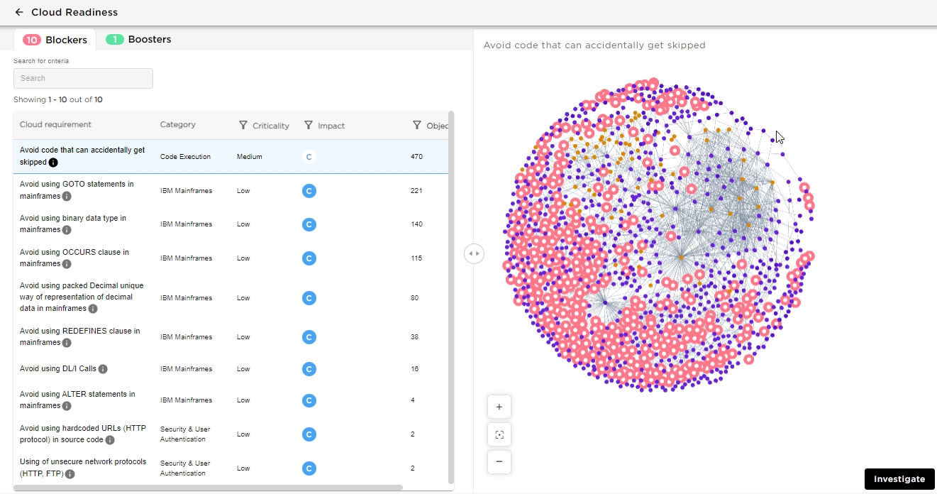 CloudReady Blockers and Boosters / Containerization Blockers data