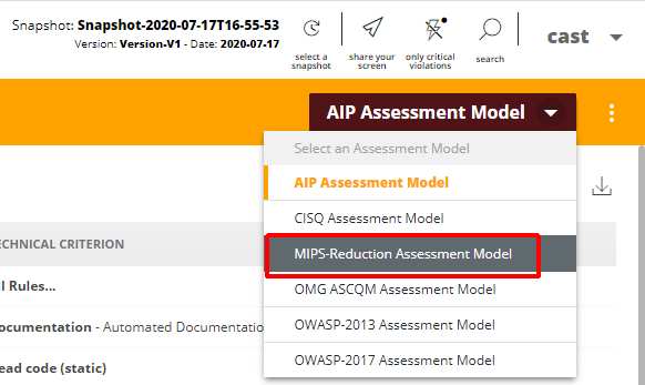 This extension will compute the MIPS (Million Instructions Per Second) Reduction Index as a Business Criterion with dedicated supporting Technical Criteria. All CAST rules that are tagged with a MIPS related tag will contribute to these MIPS specific Business and Technical Criteria, thereby allowing specific grades and rule violations to be reported.