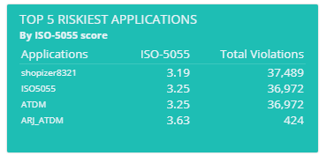 By default, the tiles in this view use the root ISO-5055 Business Criterion (ISO-5055), but you can also use any of the ISO-5055 business/technical criterion for the “qualityIndicator” parameter: