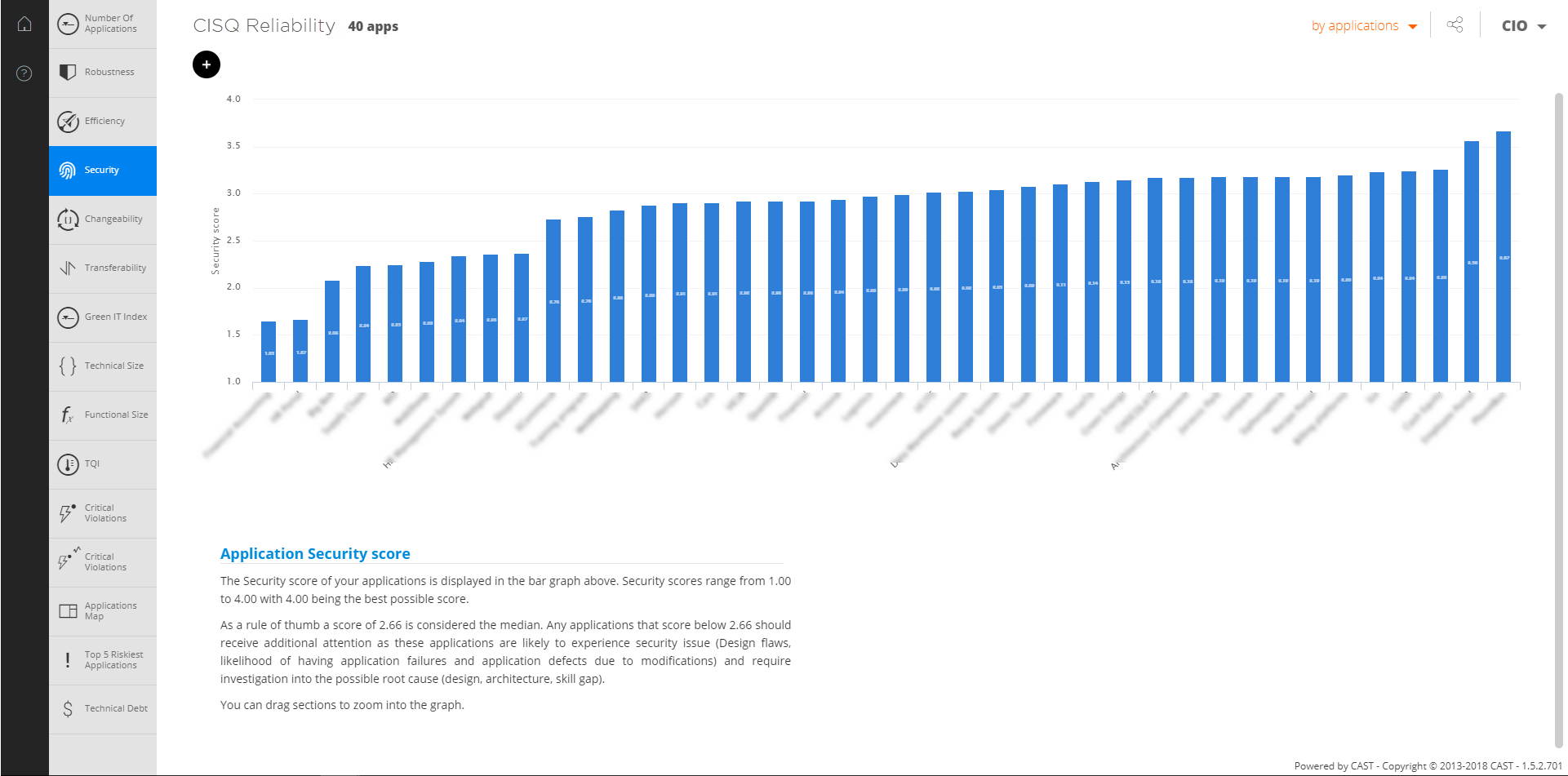 - If you would like to view CISQ, OWASP, CWE and other quality standards data in the CAST dashboards (Health, Engineering and Security) in dedicated custom tiles, you should install this extension.