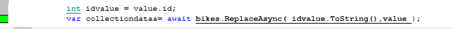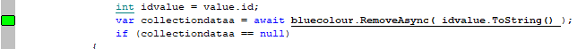 var collectiondataa = await bluecolour.RemoveAsync( idvalue.ToString() );