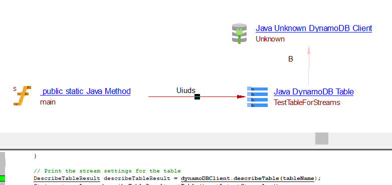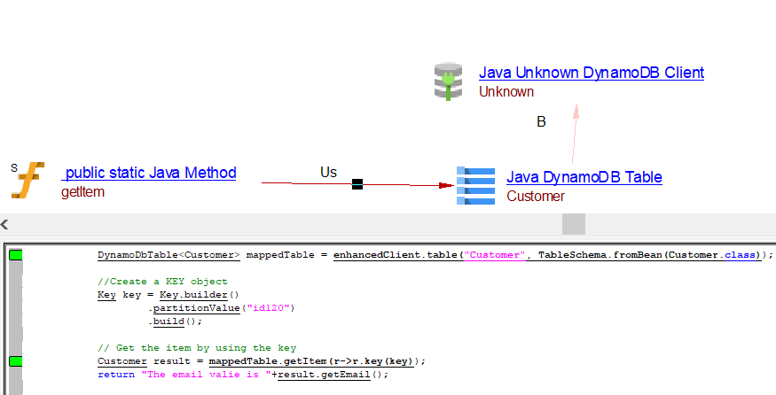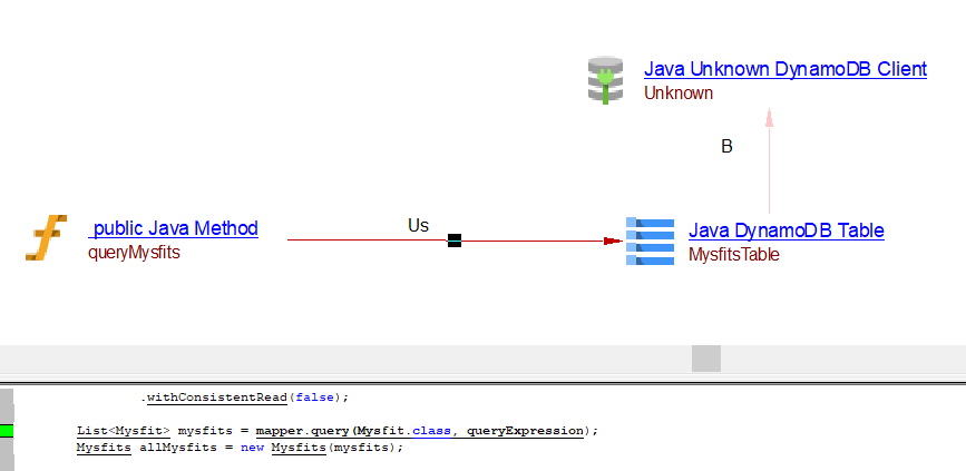 | useInsertLink | Between the caller Java Method objects and Java AWS DynamoDB table object | batchWriteItems, transactWriteItems may result in useInsertLink, useUpdateLink or useDeleteLink depnding on the usage. | ||||
