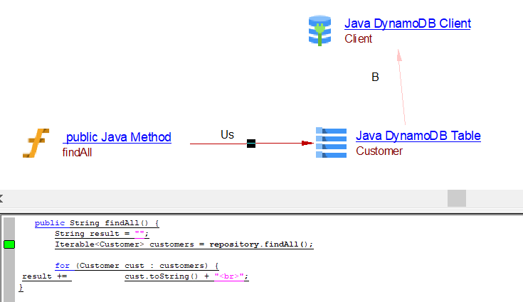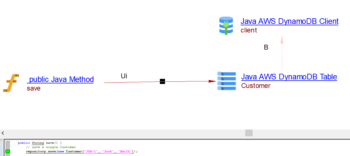 | useSelectLink | Between the caller Java Method objects and DynamoDB client | existsById findById findAll |