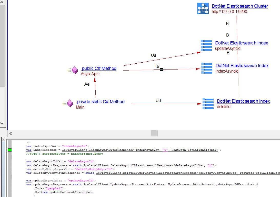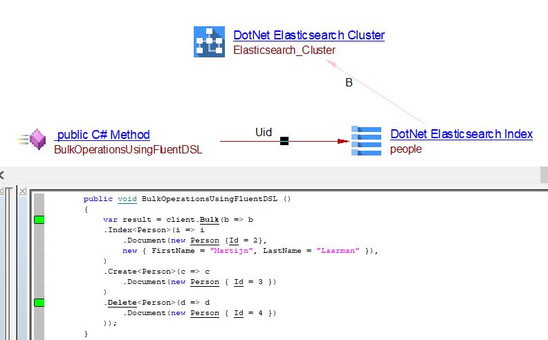 | useLink | Between the caller .NET Class / Method objects and DotNet Elasticsearch Index objects | Bulk BulkAsync DefaultIndex |