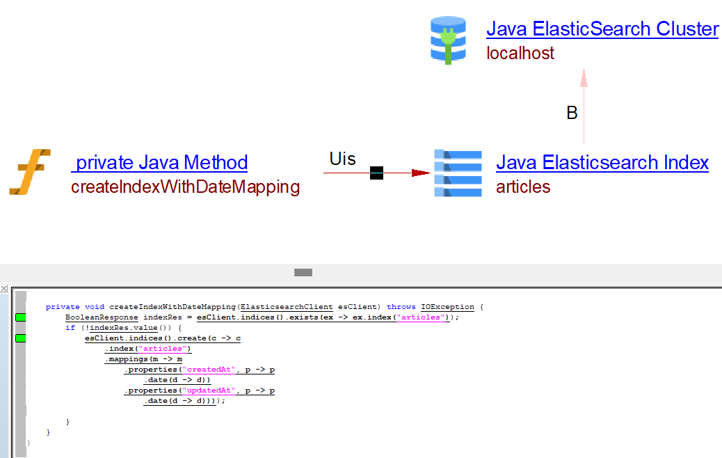 | useLink | Between the caller .NET Class / Method objects and Java Elasticsearch Index objects | |