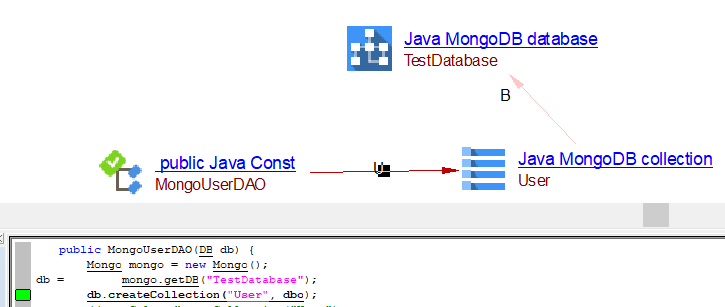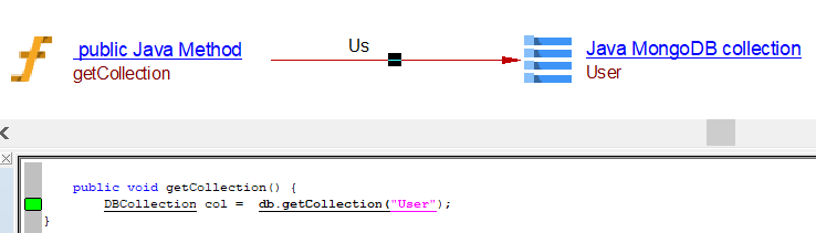 | useLink | Between the caller Java Method objects (constructors also) and Java Mongo Collection Object | mapReduce createCollection subscribe bulkWrite execute |