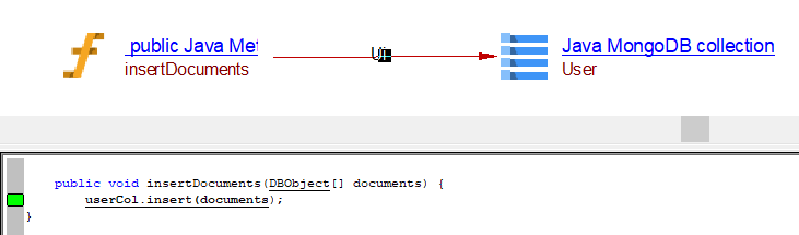 | useInsertLink | Between the caller Java Method objects (constructors also) and Java Mongo Collection Object | insert insertOne insertMany bulkWrite save |