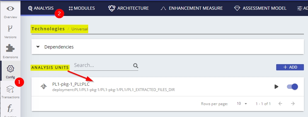 A discoverer is provided with the extension to automatically detect PL/1 code: a PL/1 project will be discovered for the package’s root folder when at least one .PLC or .PLI file in a folder (including post preprocessing) is detected in the root folder or any sub-folders. For every PL/1 project located, one Universal Technology Analysis Unit will be created:
