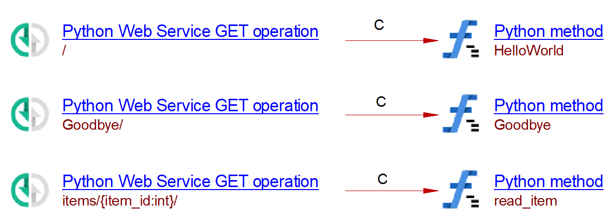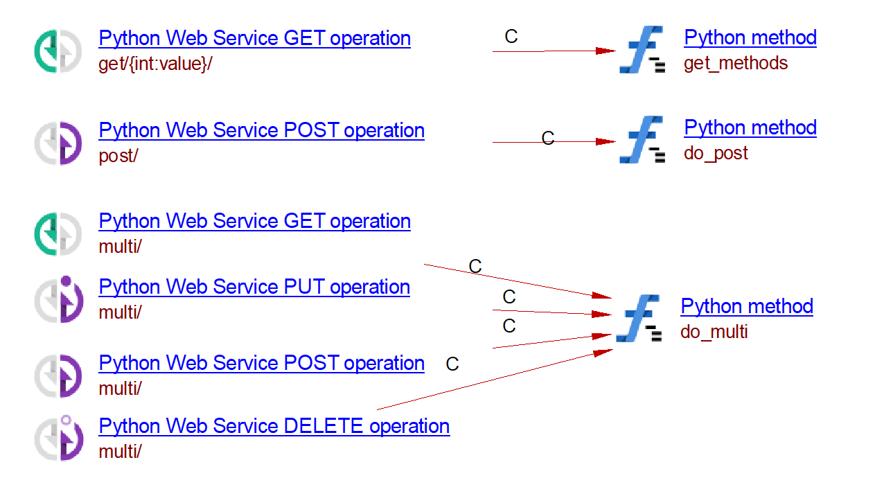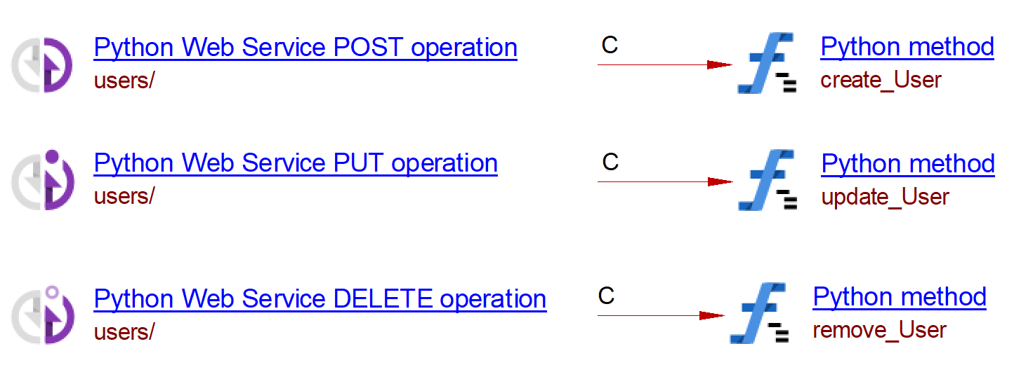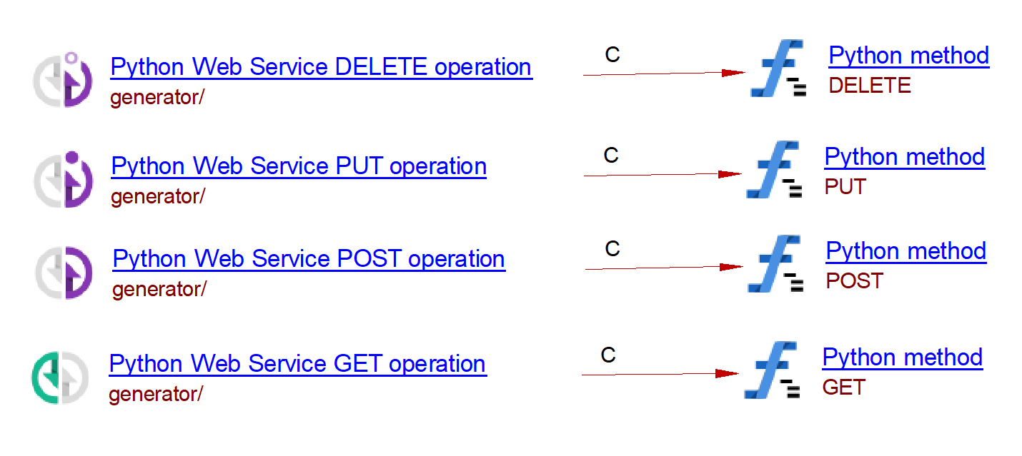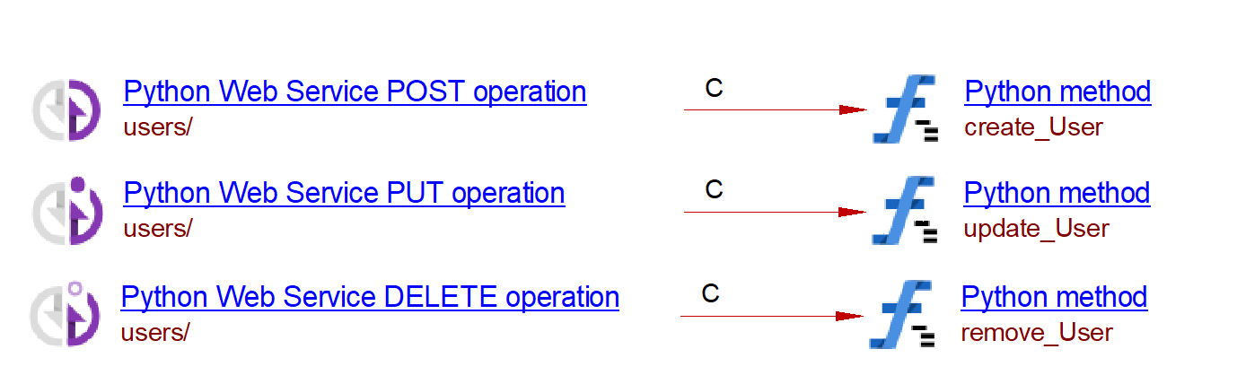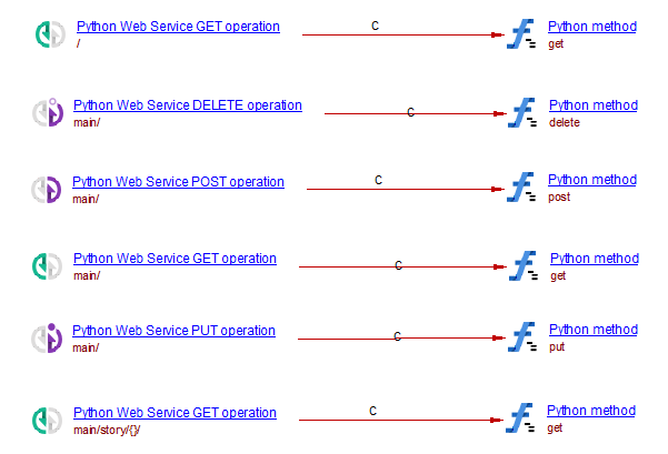 | Methods ({app}: sanic.app.Sanic) | @{app}.put() | CallLink | Python Web Service PUT Operation | Python Method | - |