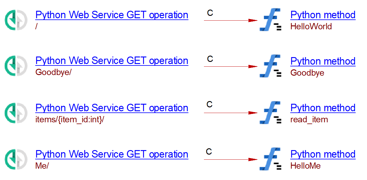In this case a Web Service Operation object associated to the function (coroutine) handler will be generated similar to the example for flask given below.
