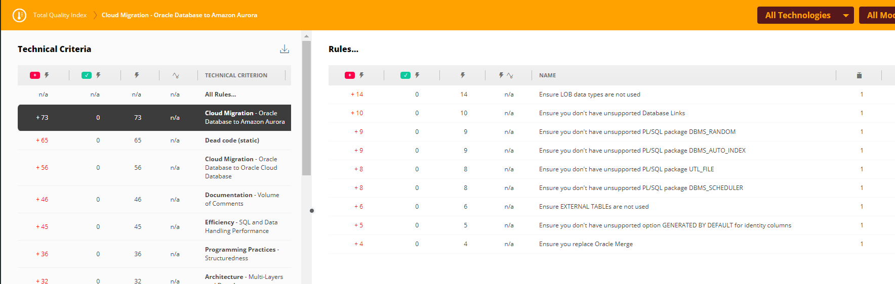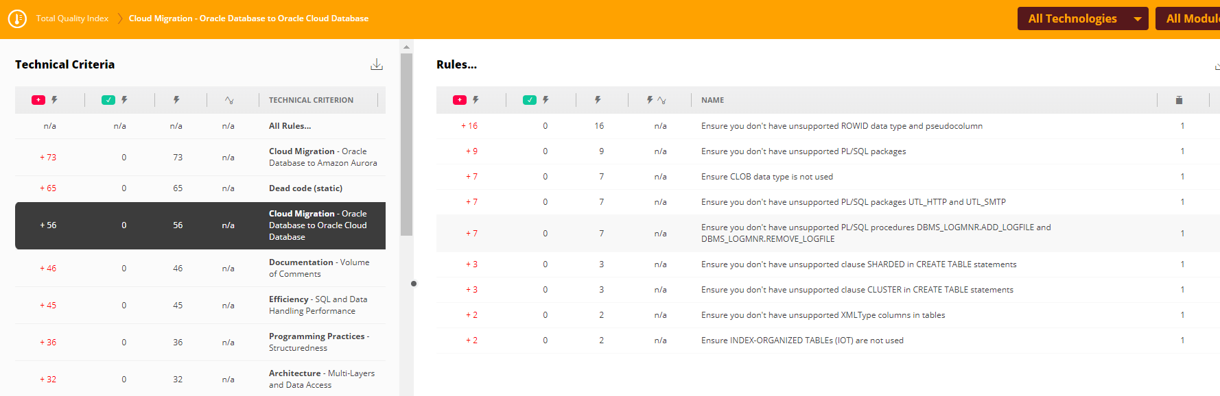 This extension provides a dedicated set of quality rules, i.e. recommendations, that have been designed to help plan a modernization project for taking an on premise RDBMS to the Cloud or to migrate to another RDBMS.