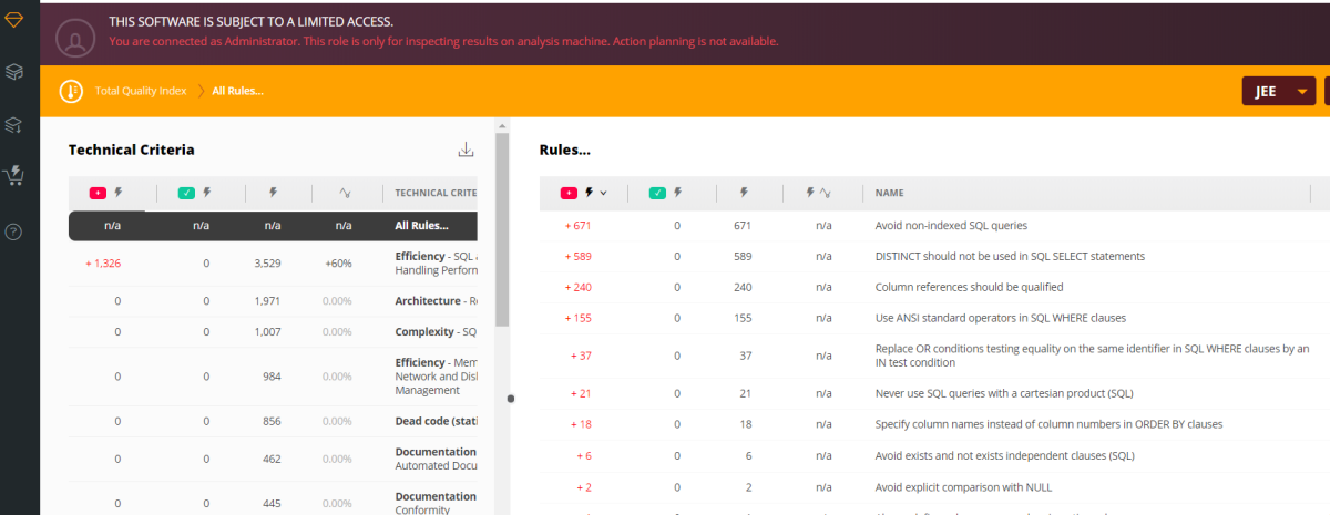Now, you can also note the SQL quality rules applied on client code, e.g.: