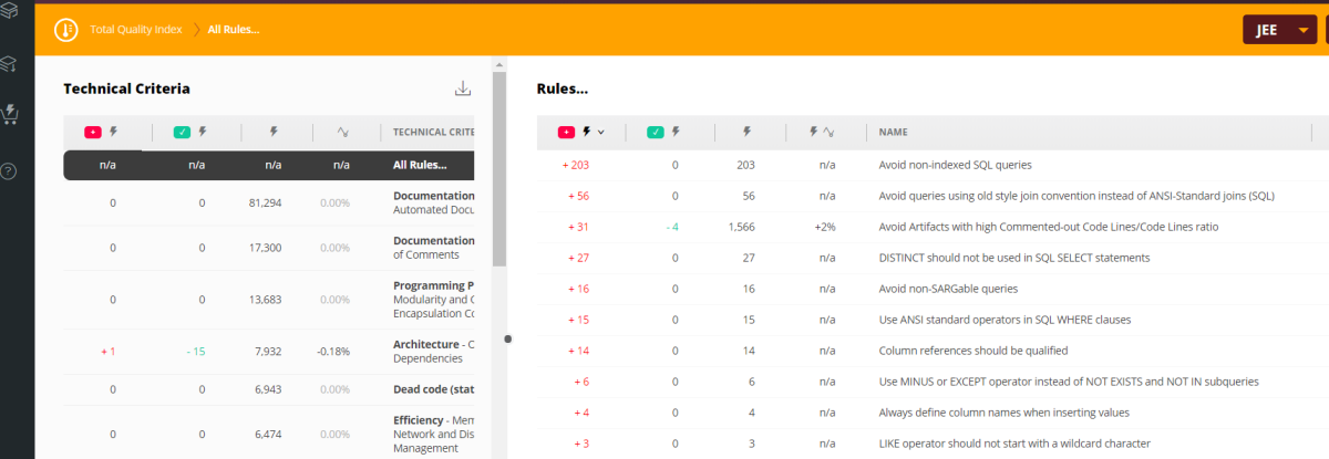 Now, you can also note SQL quality rules applied on client code, e.g.: