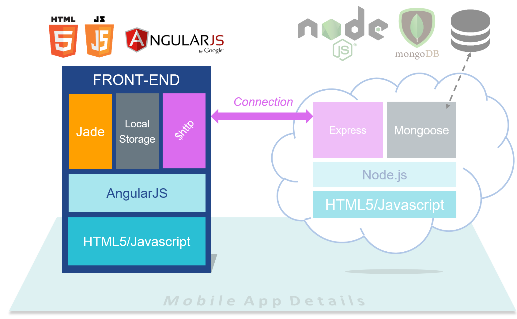 E.g. : AngularJS Front-end connected to Node.js Back-end