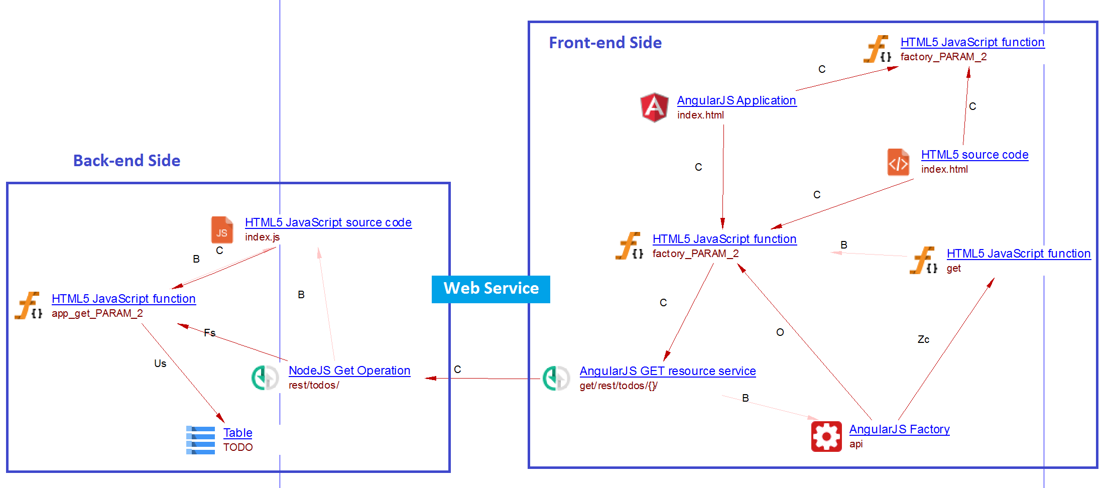 These web services are resolved to web service operations on the server side for the following supported frameworks: Node.js, JAX-RS, Spring MVC: