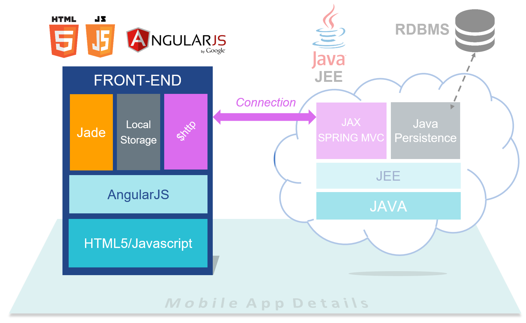 | AngularJS Front-End connected JEE Back-End | AngularJS Front-End connected Node.js Back-End |