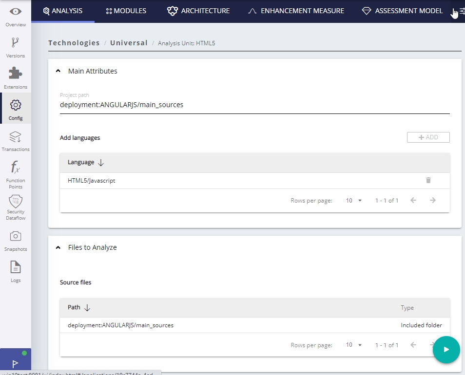 - You should ensure that you configure the extension to ONLY analyze the front end web application built with the HTML5/JavaScript that communicates with the back end web client part of a .NET or JEE application.