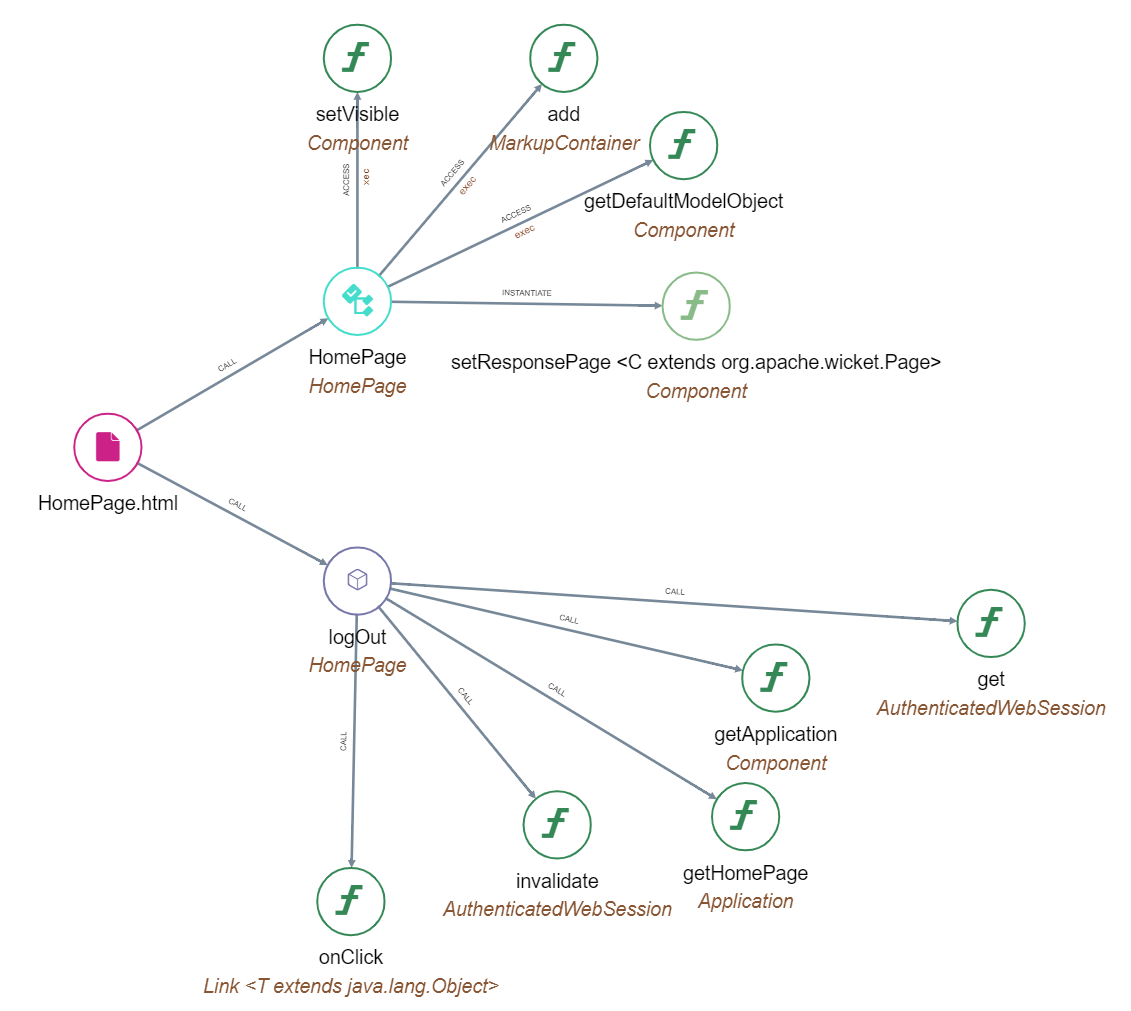 Whenever a call to a method adding elements to an Apache Wicket Java class (Java class that inherits any class that contains “org.apache.wicket”) is found in the source code, this extension evaluates the name of the wicket_id in which the operation is made and a corresponding object is created.