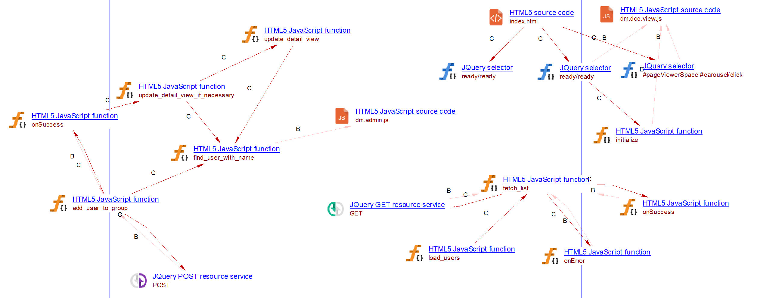 If your Web application contains jQuery source code and you want to view these object types and their links with other objects, then you should install this extension: