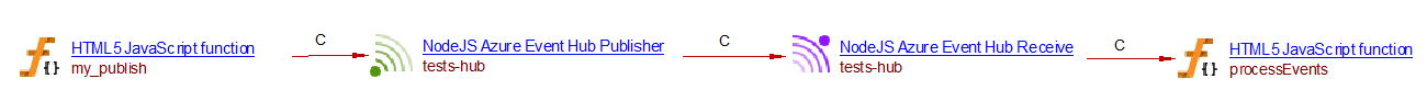 …this extension evaluates the name of the Event Hub in which the operation is made and creates an Event Hub Publisher object with a callLink from the caller. Whenever a call to EventHubConsumerClient.subscribe is found in the source code, this extension evaluates the name of the Event Hub in which the operation is made and creates an Event Hub Receiver object with a callLink to the handler method*.*