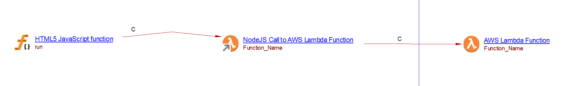 A lambda can be executed through an invocation. A NodeJS Call to AWS Lambda Function object is then created. Its name is that of the invoked Lambda function. The com.castsoftware.wbslinker extension will then link that object to any matching Lambda objects.