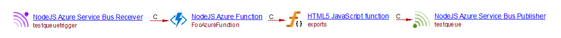 - When the bindings section of the function.json file contains one item of type “serviceBus” with a direction “out”, a Service Bus Publisher is created with a call link from the handler function. The name of the queue is evaluated from the “name” value.