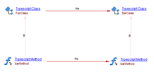 - callLink: Created when a method or a function is called. These links connect TypeScript Method and TypeScript Function elements between them.